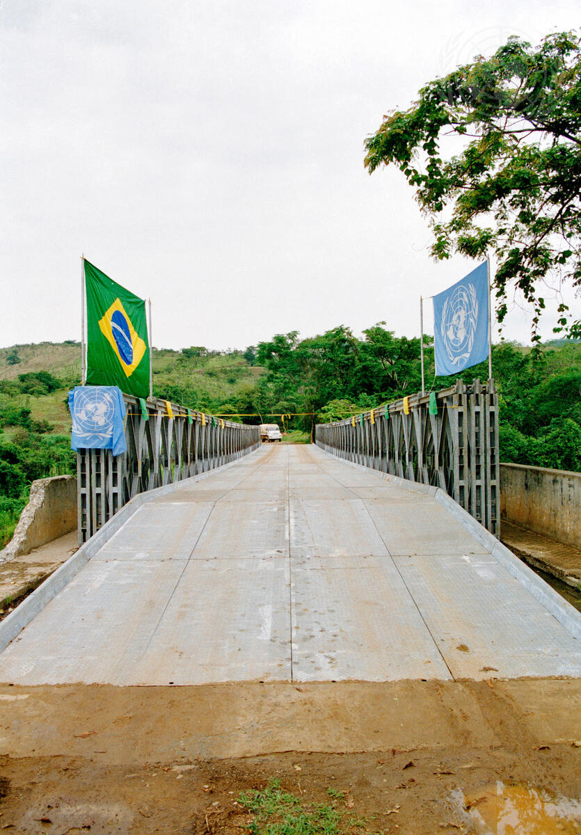The Rio Dange Bridge Inauguration in Huambo, Angola. The bridge was constructed by a UNAVEM engineering corp from the Republic of Korea. It was one of eight such bridges renovated after civil conflict damaged them. This bridge separates roads to Uige and Luanda.