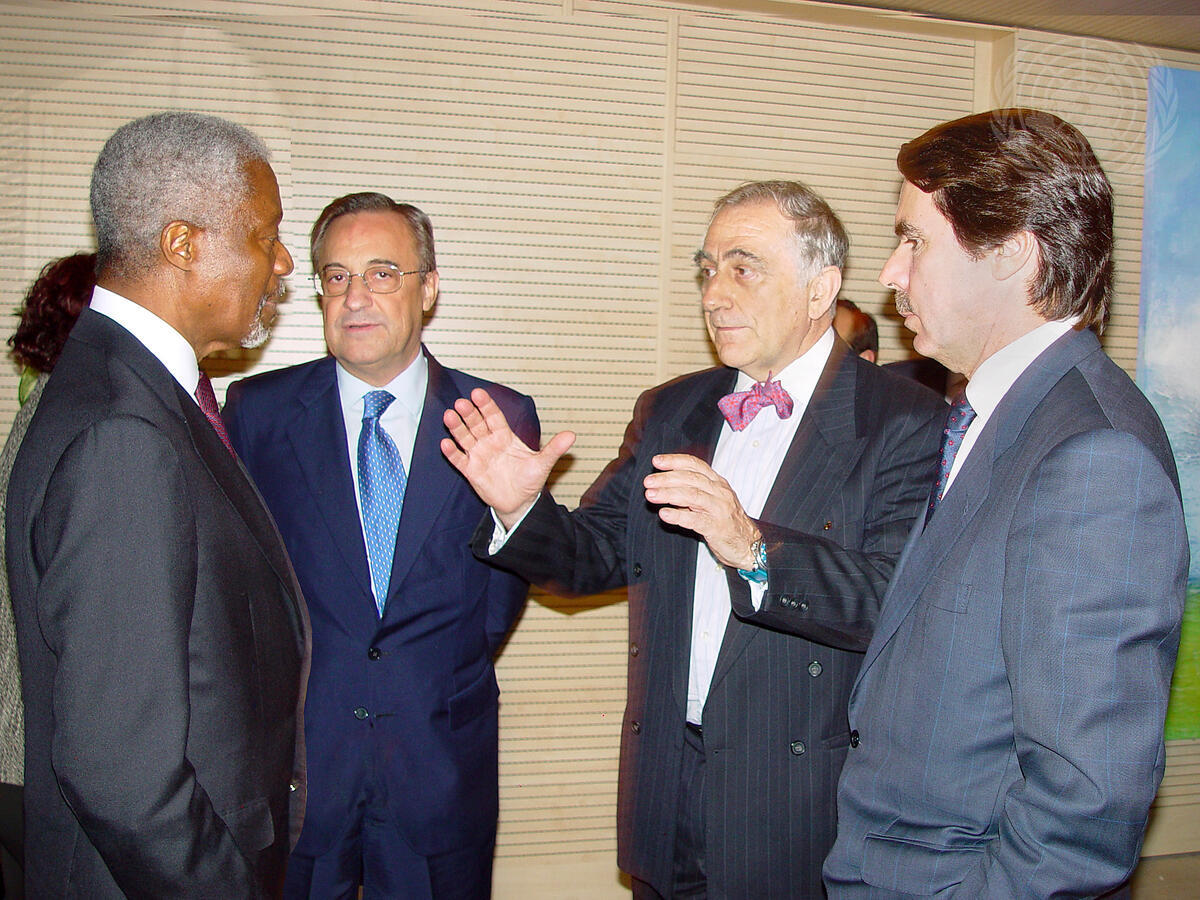 Left to right: Secretary-General Kofi Annan, Florentino Perez, President of Real Madrid Football Club, Inocencio F. Arias, Permanent Representative of Spain to the United Nations, and José María Aznar (left), Prime Minister of Spain.
