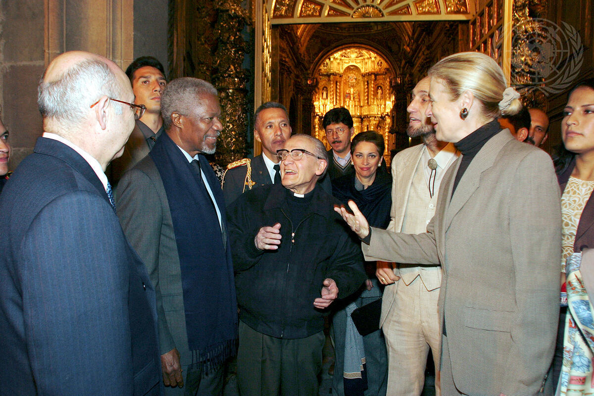 Secretary-General Kofi Annan (second from left) and Nane Annan (right in front) visit the Iglesia de la Compania in Quito, Ecuador.