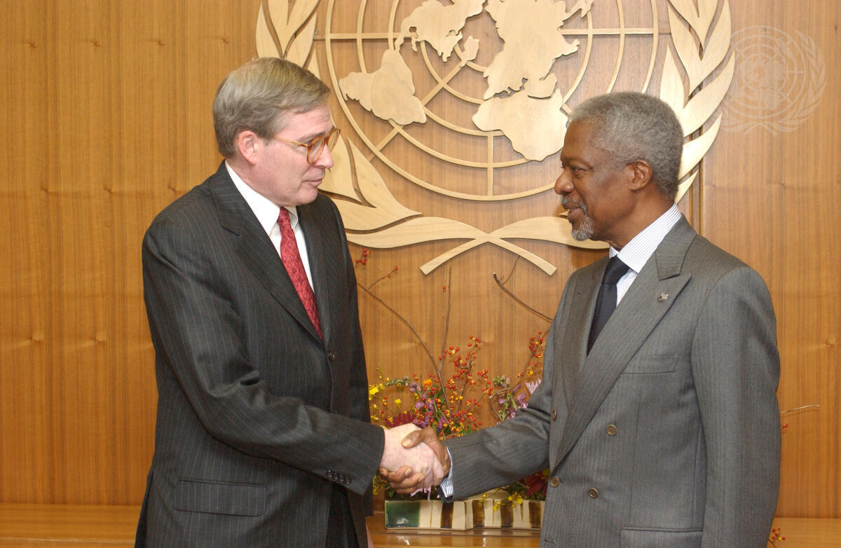 Secretary-General Kofi Annan (right) meets with Stephen J. Hadley, Deputy National Security Advisor of the United States.