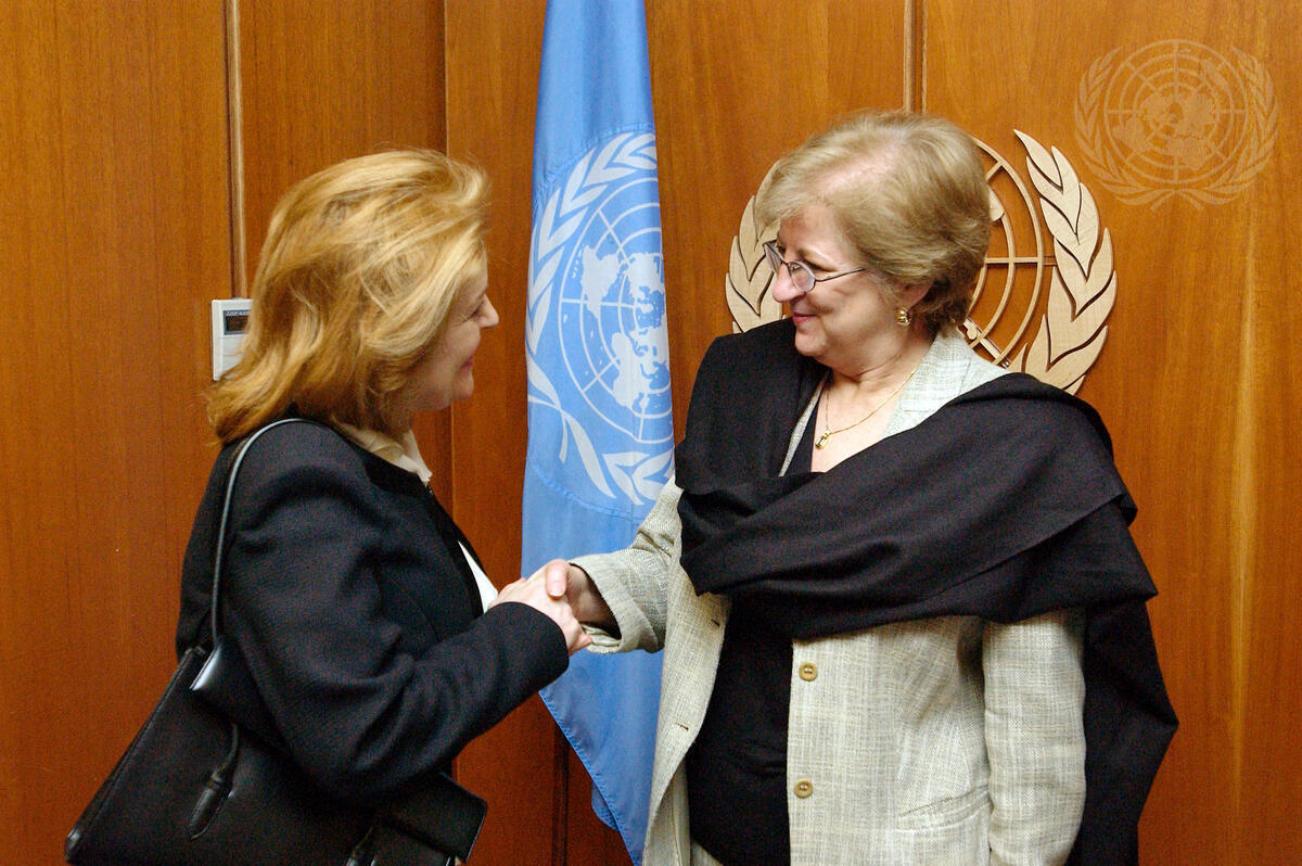 Deputy Secretary-General Louise Fréchette (right) meets with Magdalena Vasaryova, State Secretary of the Ministry of Foreign Affairs of the Slovak Republic.