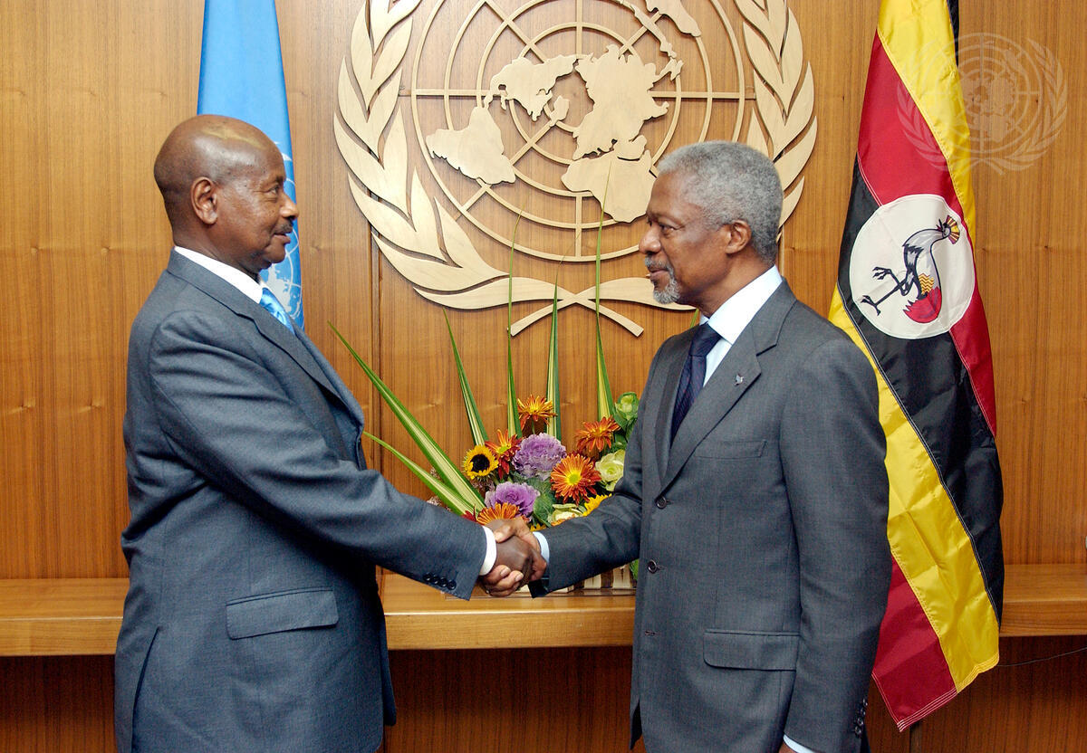 Secretary-General Kofi Annan (right) meets with Yoweri Kaguta Museveni, President of the Republic of Uganda.
