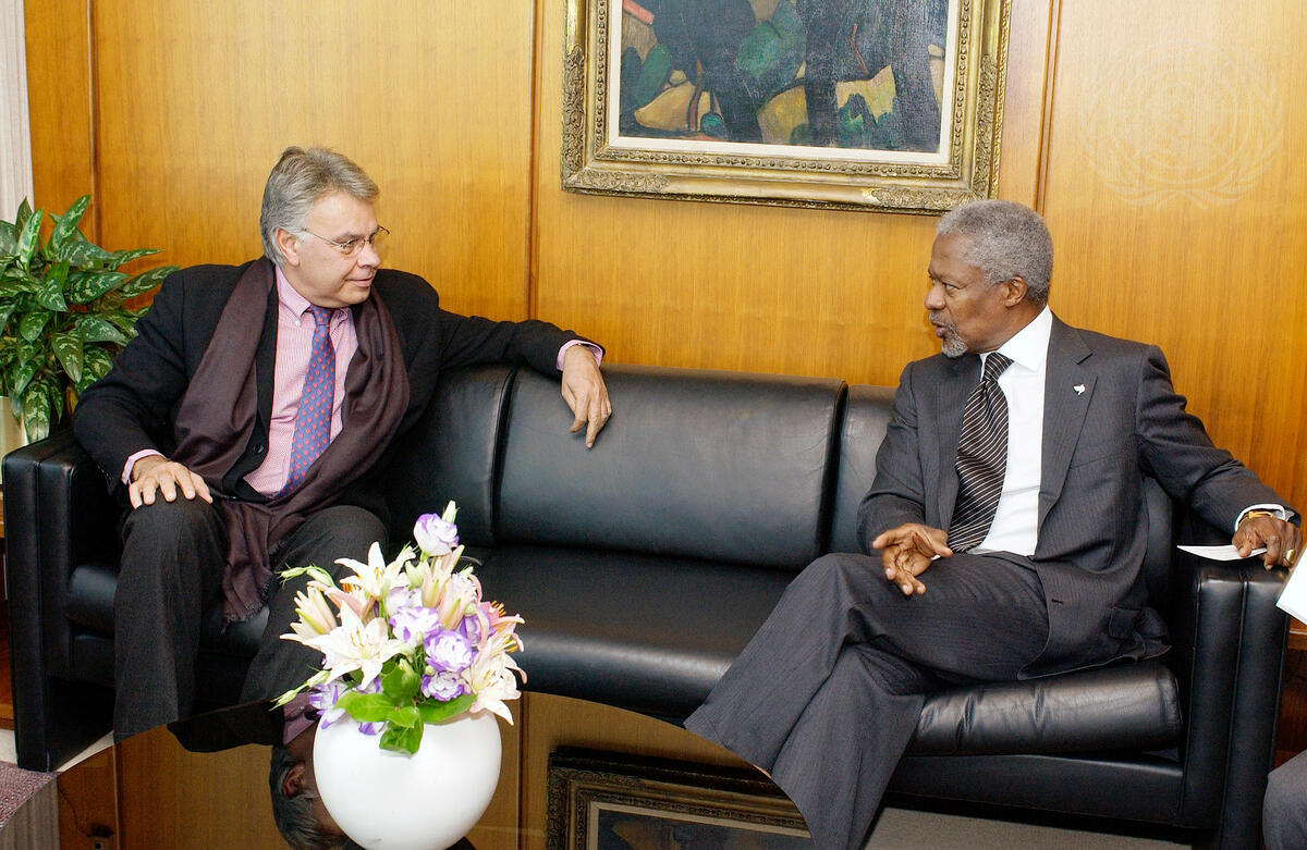 Secretary-General Kofi Annan (right), meets with Felipe Gonzales, former Prime Minister of Spain.