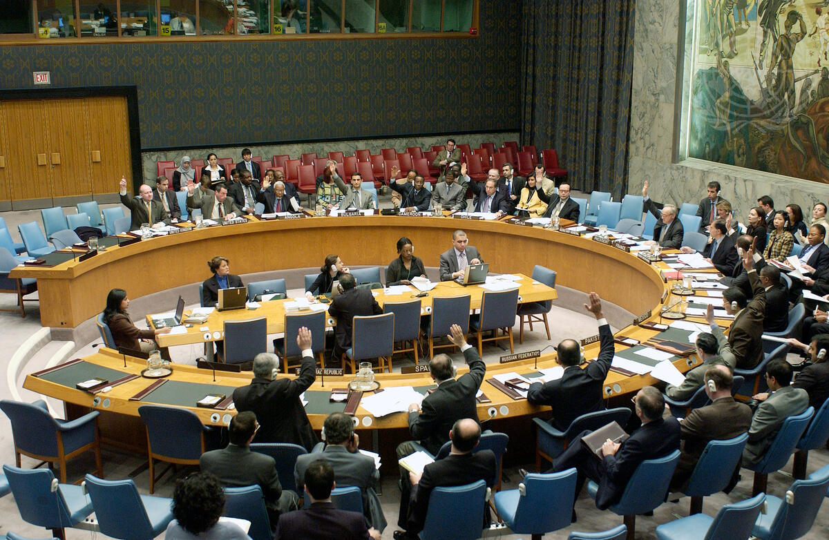 A view of the Council as they vote unanimously in favour of resolution 1460 (2003).