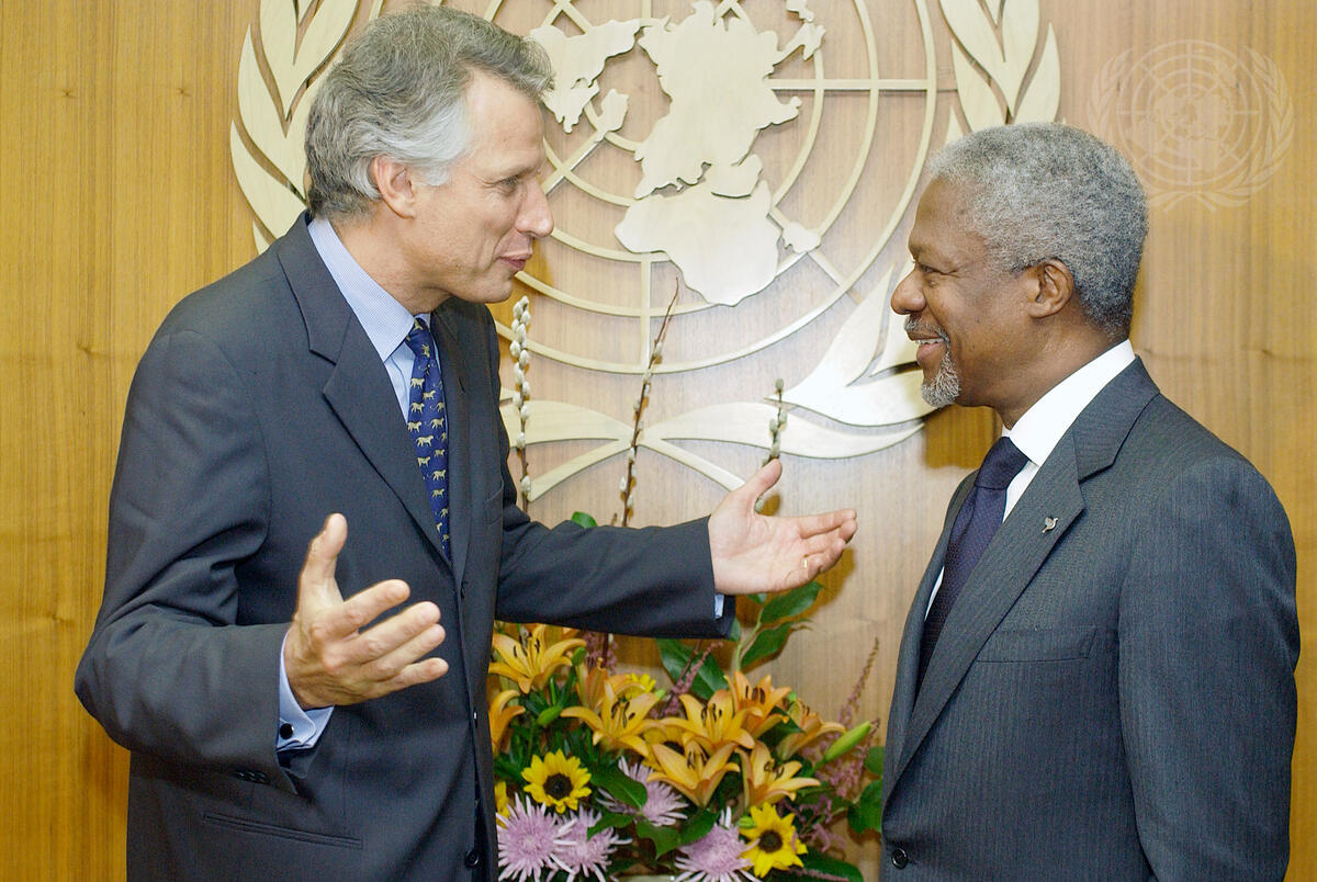 Secretary-General Kofi Annan (right) meets with Dominique de Villepin, Minister Foreign Affairs of France.