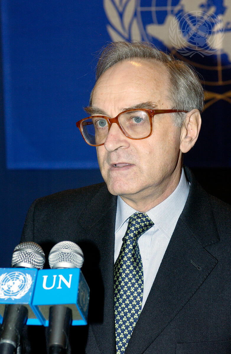 Jean-Marc de La Sablière (France), President of the Security Council for the month of January, addresses correspondents at the Security Council stakeout this morning.