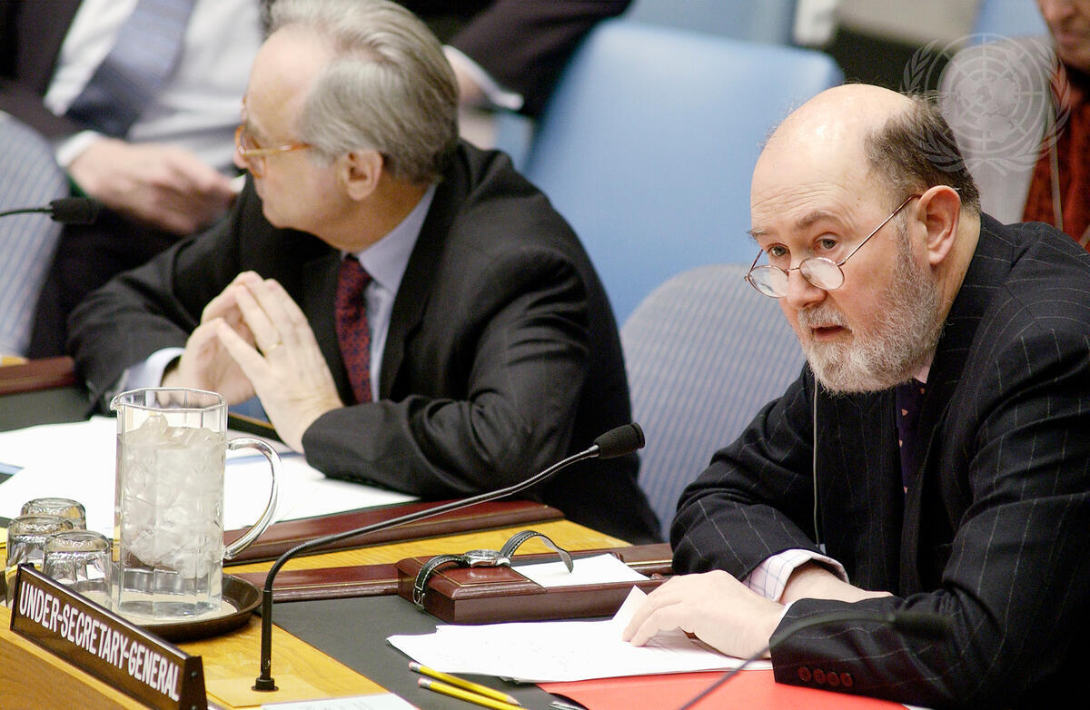 Kieran PRENDERGAST (right), Under-Secretary-General for Political Affairs, addresses the Security Council this morning, as he briefed it on the situation in the Middle East.