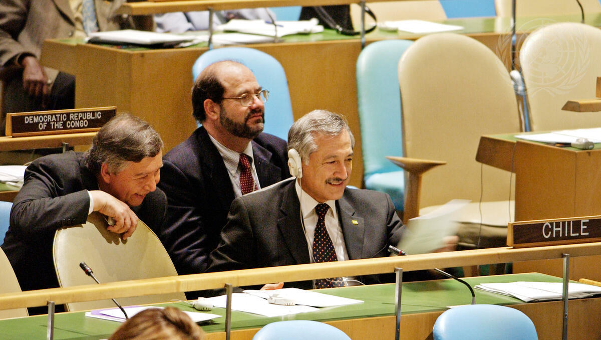 The delegation of Chile, headed by Heraldo Muñoz (behind nameplate), Permanent Representative of Chile to the United Nations, at the fifty-ninth session of the General Assembly.
