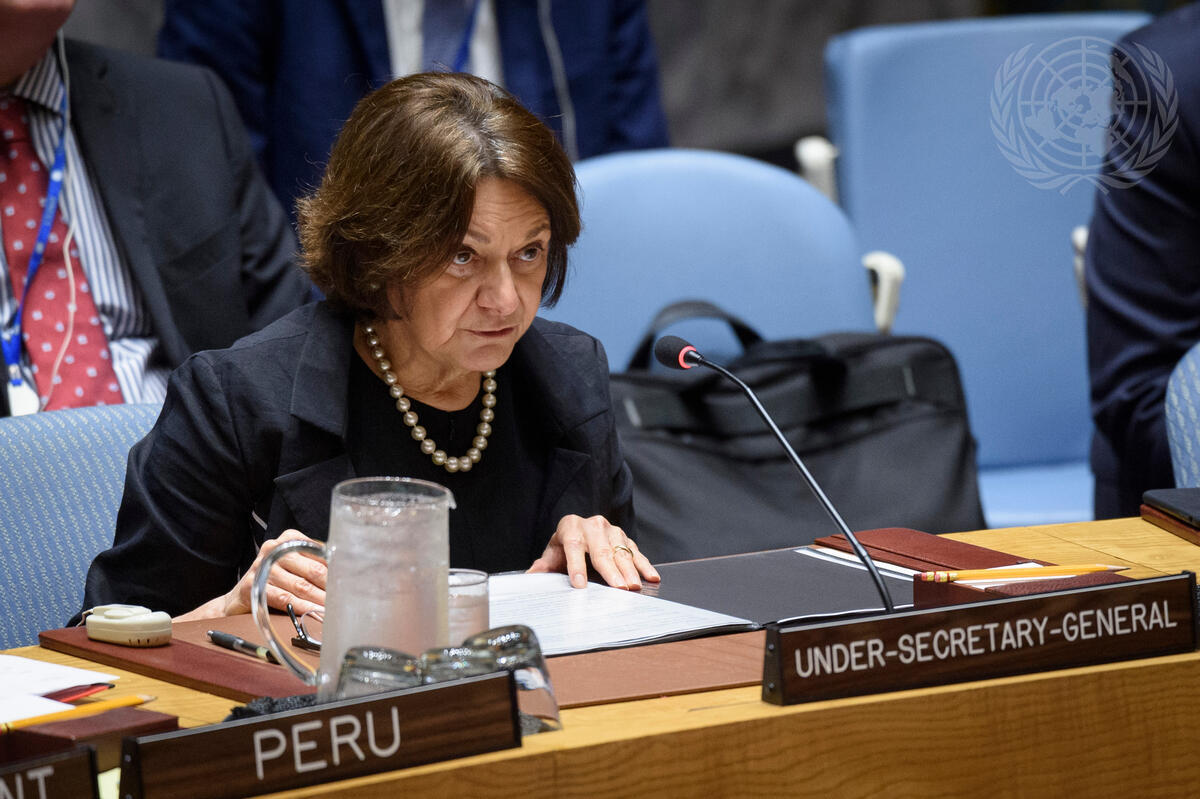 Rosemary DiCarlo, Under-Secretary-General for Political and Peacebuilding Affairs, briefs the Security Council meeting on the situation in the Middle East, including the Palestinian question.
