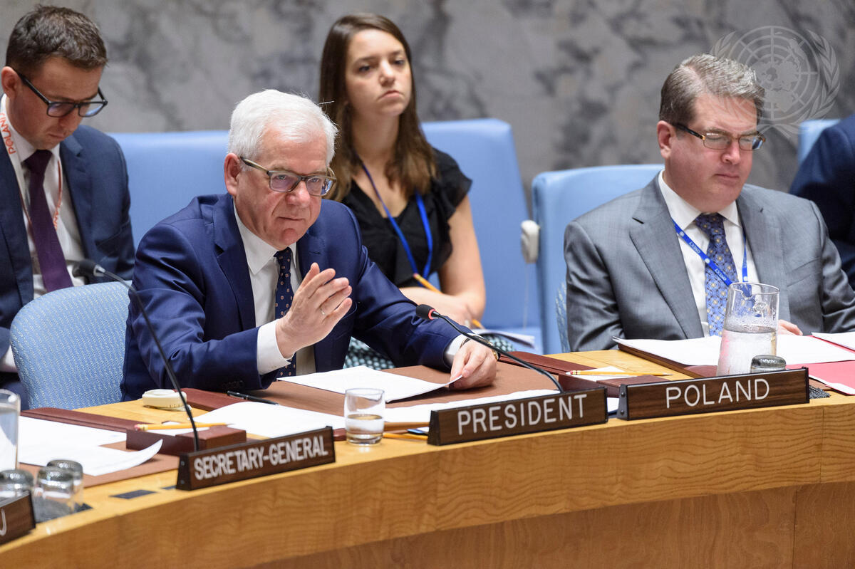 Jacek Czaputowicz, Minister for Foreign Affairs of the Republic of Poland and President of the Security Council for the month of August, chairs the Security Council meeting on children and armed conflict.