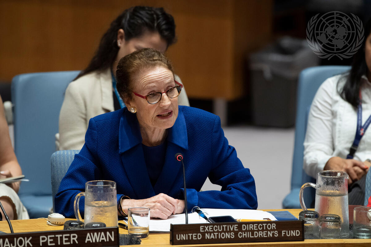 Henrietta Fore, Executive Director of the UN Children’s Fund (UNICEF), briefs the Security Council meeting on children and armed conflict.