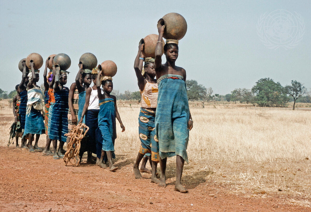 Girls in the village of Koaltinquin, near Bobo-Dioulasso, going to a distant-well to bring water. [c. 1974]
