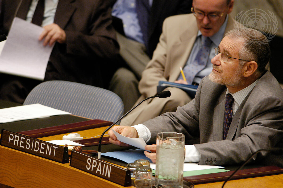Security Council President Juan Antonio Yáñez-Barnuevo (Spain) at today's meeting.