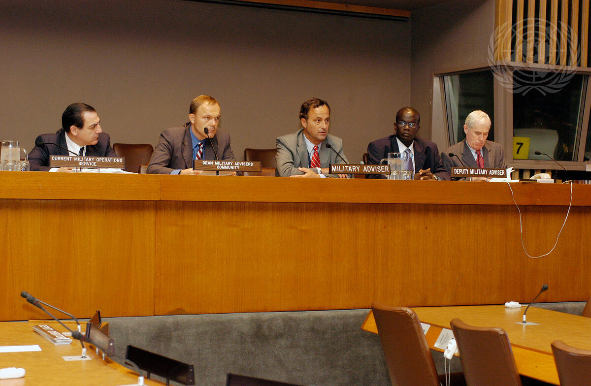 From right to left: Colonel Colm Doyle, Chief of Staff Military Division; Brigadier General Elhadji M. Kandji, Deputy Military Adviser for the Department of Peacekeeping Operations; Major General Patrick C. Cammaert, Military Adviser for the Department of Peacekeeping Operations; Colonel Walter Huhn, Military Adviser German Mission, Dean Military Adviser Community;