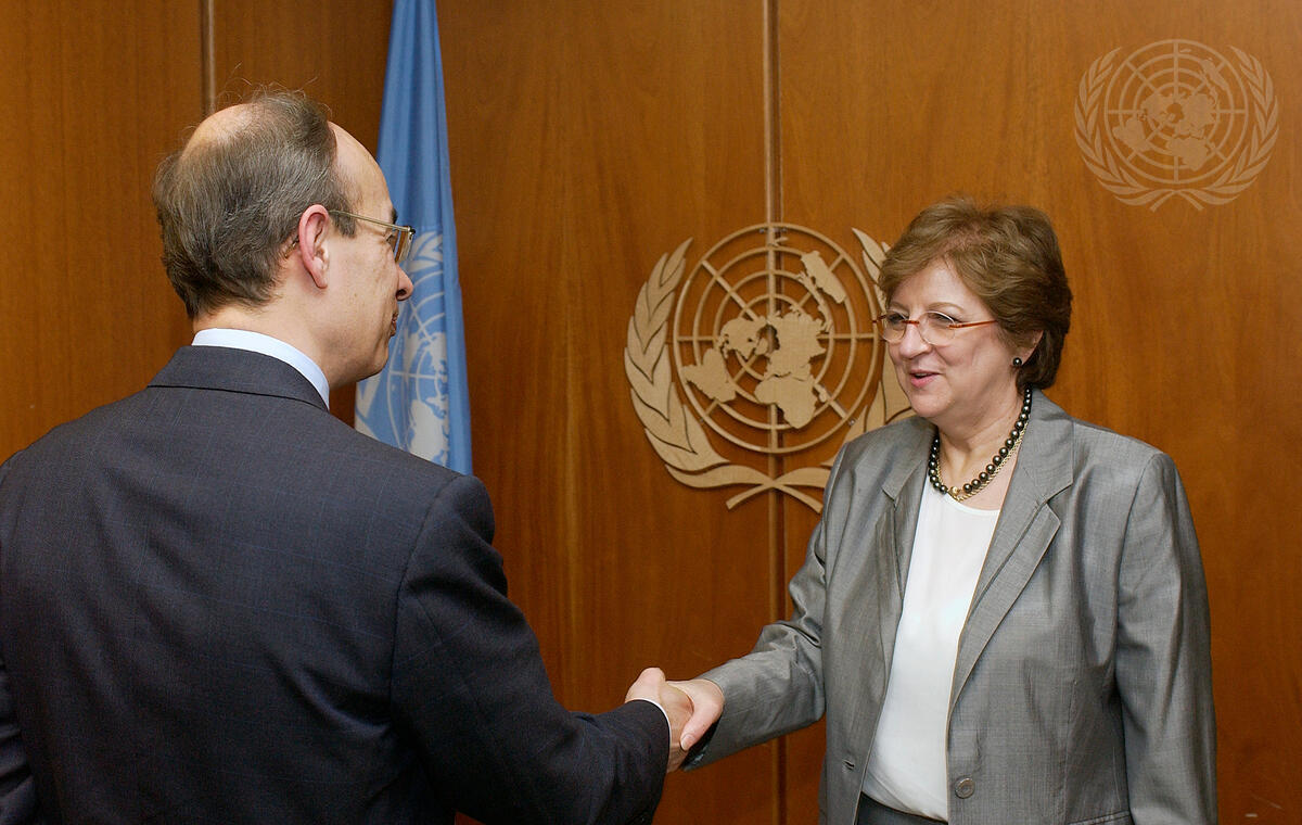 Deputy Secretary-General Louise Frechette (right) meets with Gijs De Vries, European Union Coordinator for the Fight against Terrorism.