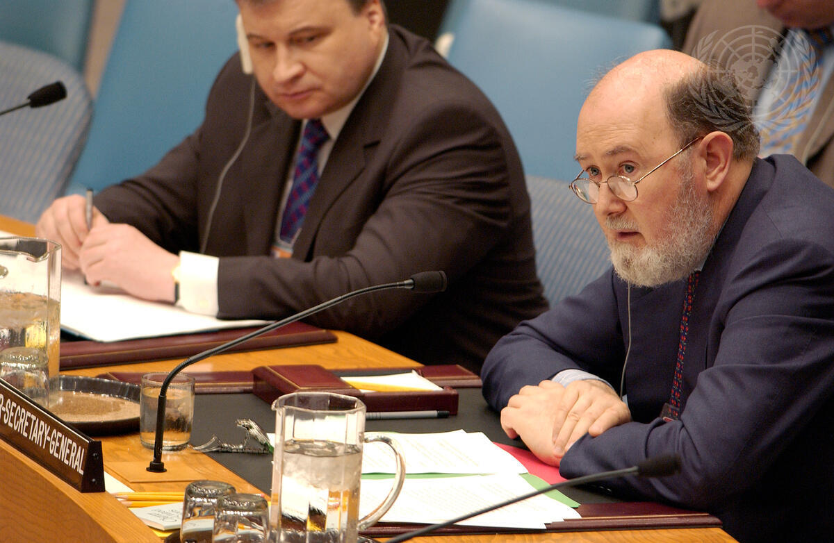 Under-Secretary-General Kieran Prendergast (right), Department of Political Affairs, addressing Members of the Council as it meets on the situation in the Middle East including the Palestinian question.