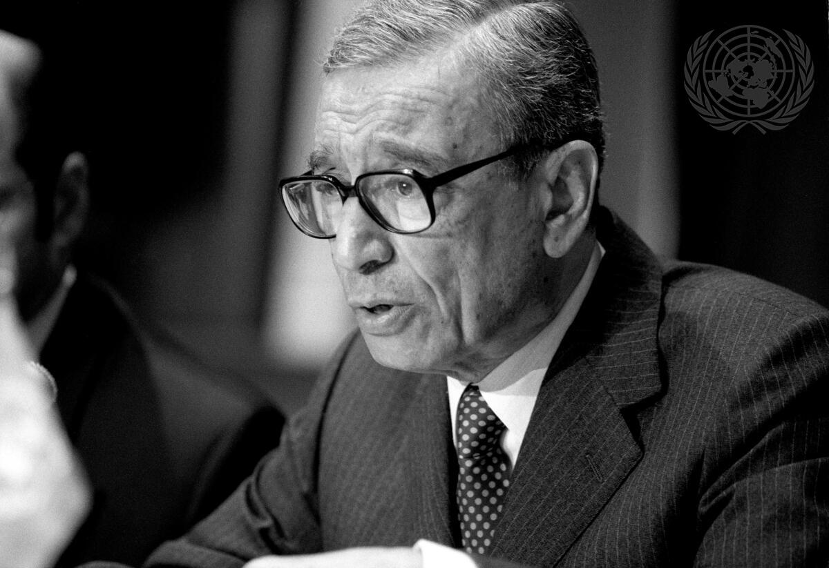 Secretary-General Boutros Boutros-Ghali addresses a press conference at Headquarters.
