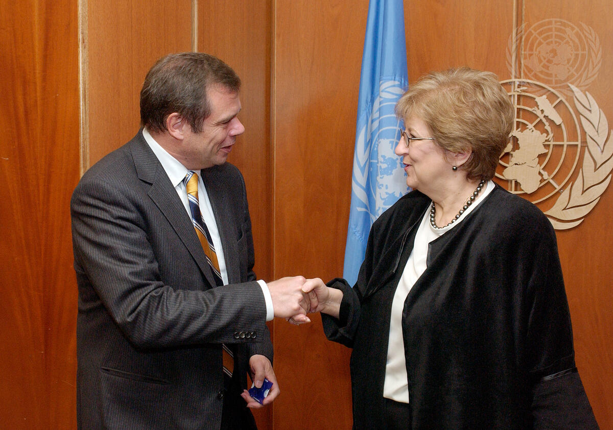Deputy Secretary-General Louise Fréchette (right) meets with Friedbert Pflüger, Foreign Policy Spokesperson of the Christian Democratic Union/Christian Social Union Parliamentary Group in the German Parliament, today at UN Headquarters.