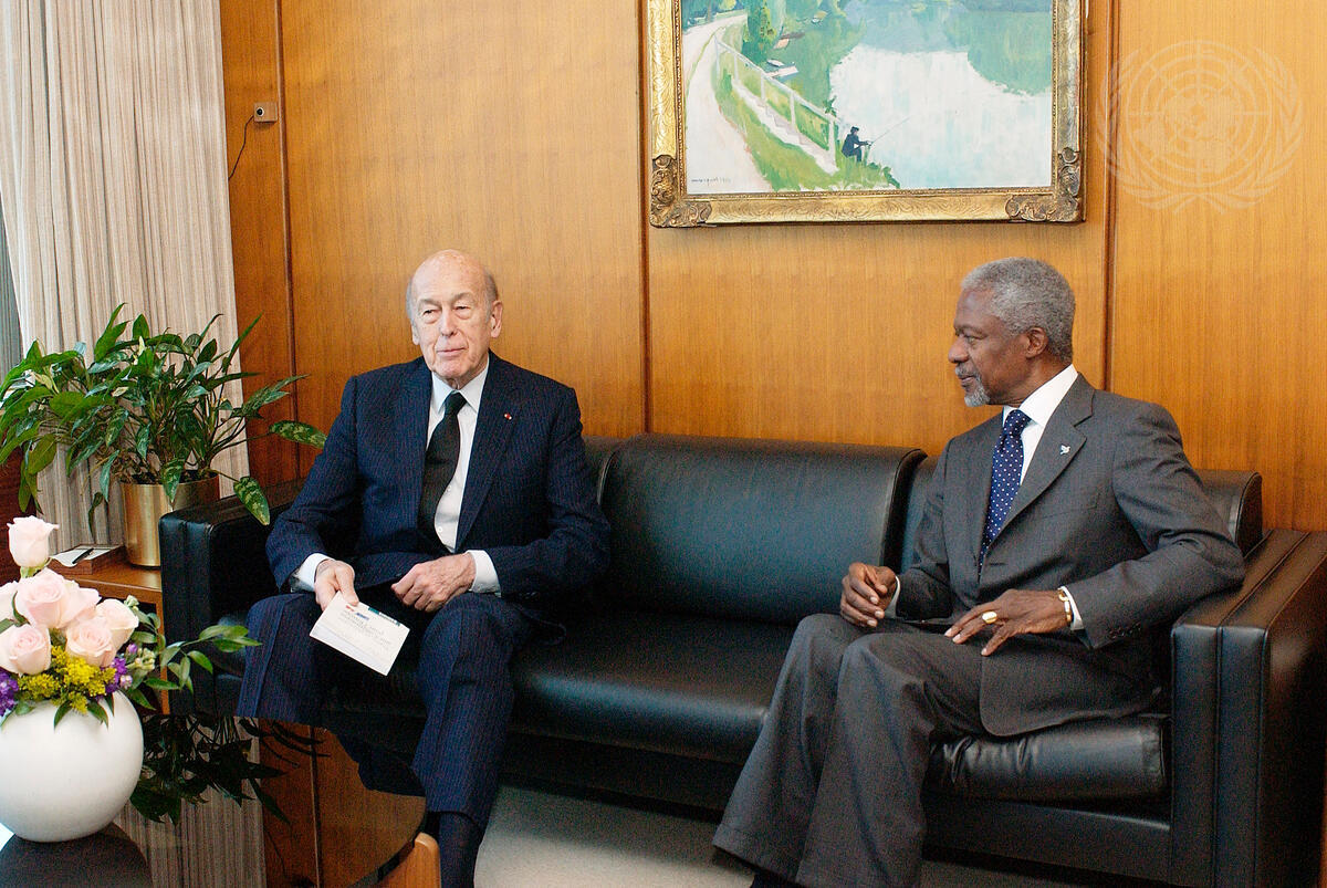 Secretary-General Kofi Annan (right) meets with Valéry Giscard d'Estaing, former President of France, today at UN Headquarters.