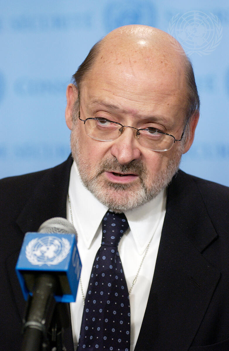 Ronaldo Mota Sardenberg, Permanent Representative of Brazil to the United Nations and President of the Security Council for the month of March, addressing correspondents today at UN Headquarters following Security Council consultations on Haiti.