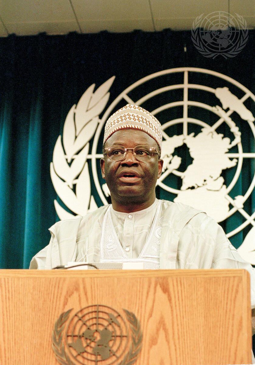Ambassador Ibrahim A. Gambari, Permanent Representative of Nigeria, addresses a press Conference at Headquarters, concerning the death of Chief
