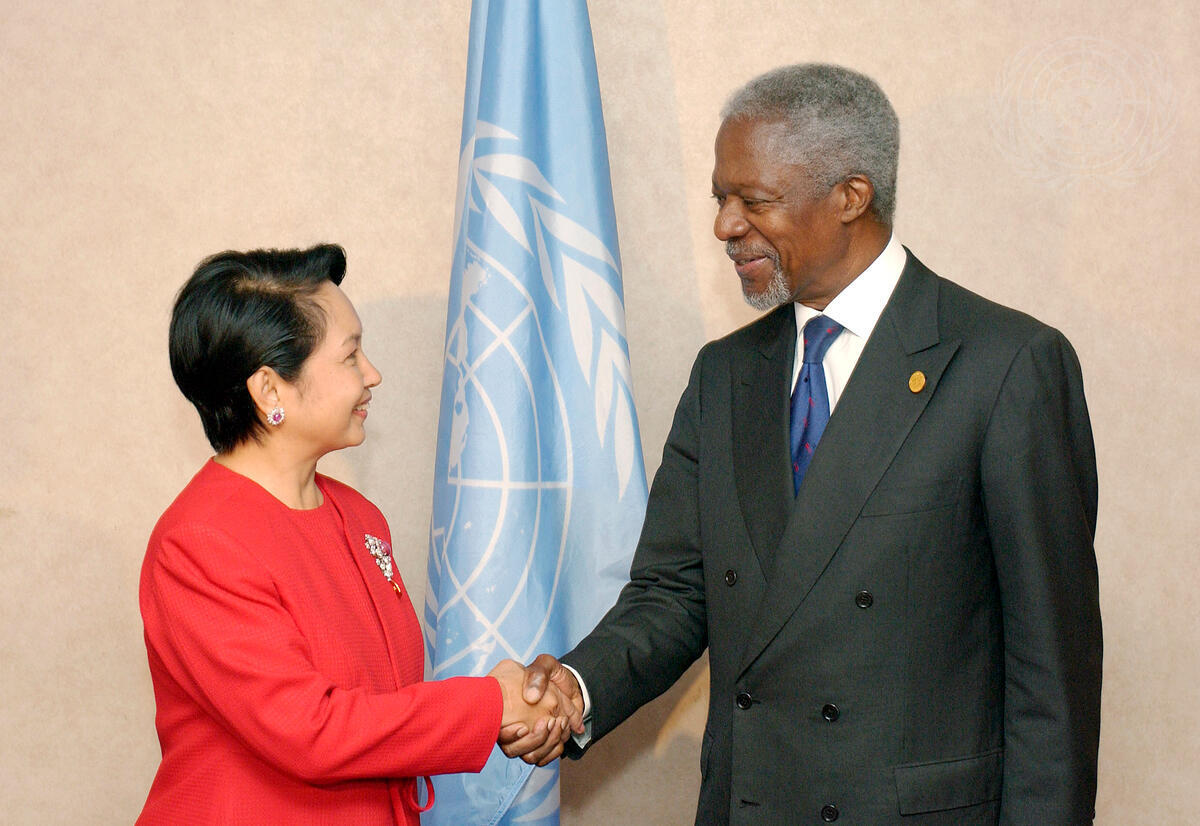 Secretary-General Kofi Annan (right) meets with Gloria Macapagal-Arroyo, President of the Republic of the Philippines, in Jakarta, Indonesia, where he is attending the Asian-African Summit 2005.
