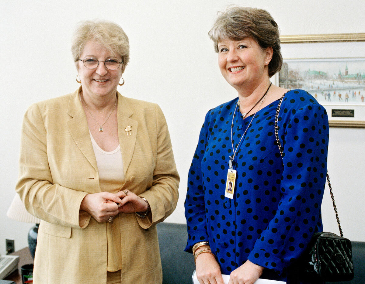Deputy Secretary-General Louise Fréchette (left) meets with Satu Marjatta Rasi, Permanent Representative of Finland.