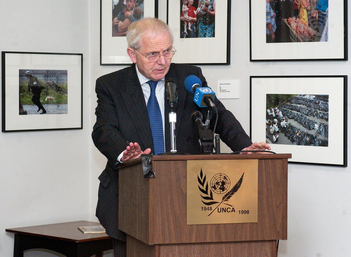 Emyr Jones Parry, Permanent Representative of the United Kingdom to the United Nations, speaking at the twentieth annual Day of Solidarity with Detained and Missing Staff Members ceremony, held today at UN Headquarters.