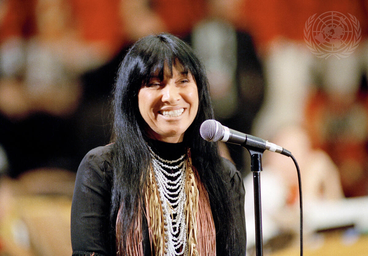 Buffy Sainte-Marie, Master of Ceremonies for the cultural event to launch the International Year of the World's Indigenous People.