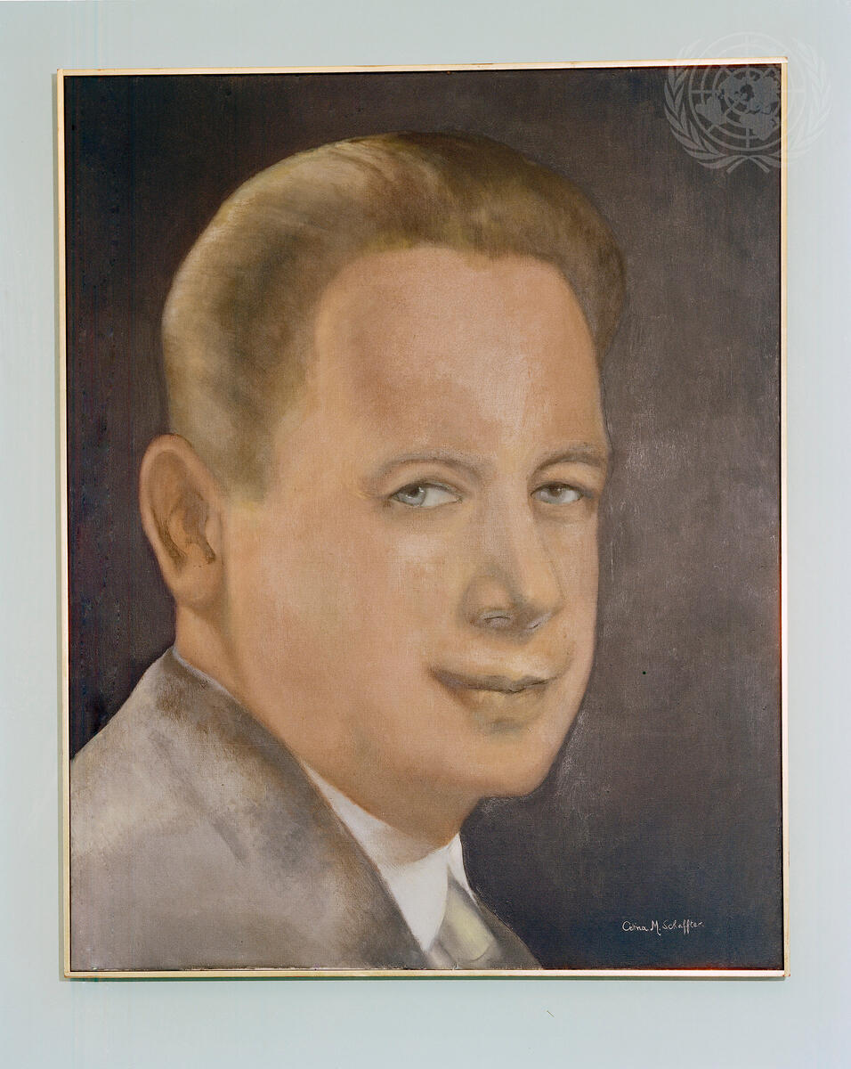 This portrait of Dag Hammarskjöld, the second Secretary-General of the United Nations, is the work of Mrs. Celina D.M. de Mundin Schaffter. A joint gift of Argentina and Sweden, it hangs in the Main Reading Room of the Dag Hammarskjöld Library at UN Headquarters in New York.
