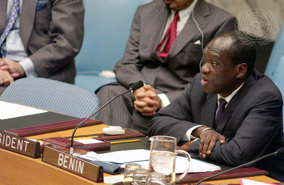 Joël W Adechi, Permanent Representative of the Republic of Benin to the United Nations and President of the Security Council for the month of February, addressing the members of the Council.