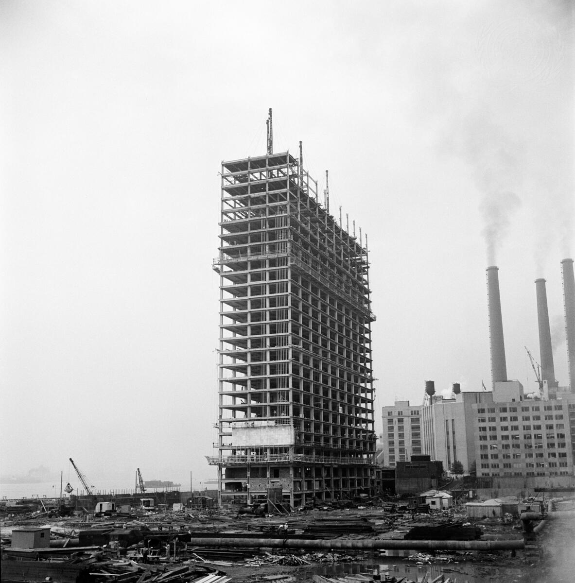 Steelwork on 24 of the 39 stories of the United Nations Secretariat building in mid-Manhattan.
