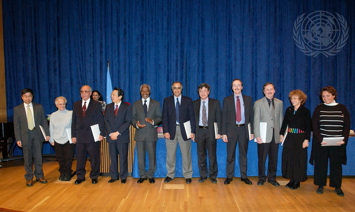 The Secretary-General Kofi Annan (fifth from left) with the winners of the UN 21 Awards.