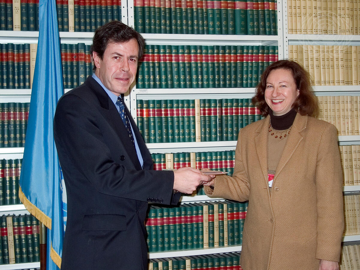 Enrique Berruga Filloy (left), Permanent Representative of Mexico to the United Nations, deposits the Instruments of Accession of the "International Tropical Timber Agreement, 1994."