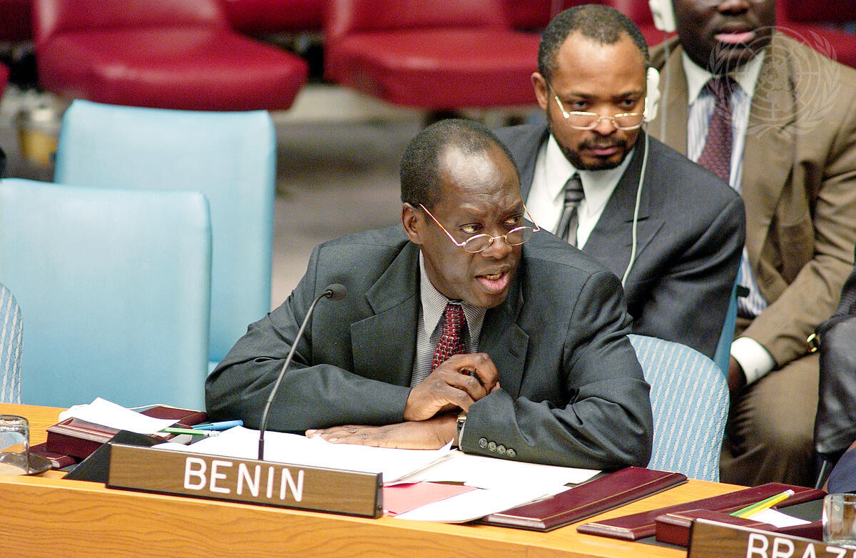 Joël W. Adechi, Permanent Representative of the Republic of Benin to the United Nations, addressing the Security Council. The Security Council met this morning to discuss the issues of West Africa, specifically Côte d'Ivoire, Guinea Bissau, Liberia and Sierra Leone.