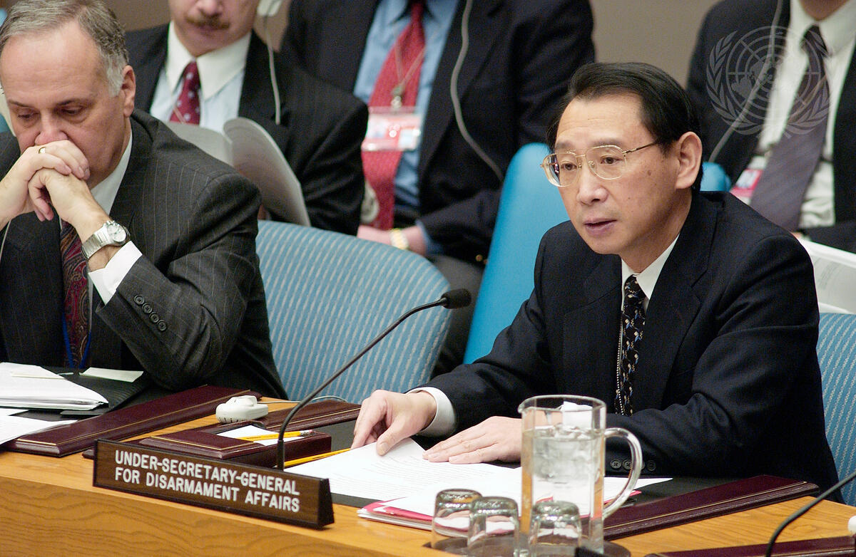 Nobuyasu Abe (right), Under-Secretary-General for Disarmament Affairs, addressing the Council. The Security Council met this morning to hold an open debate on the issue of small arms.