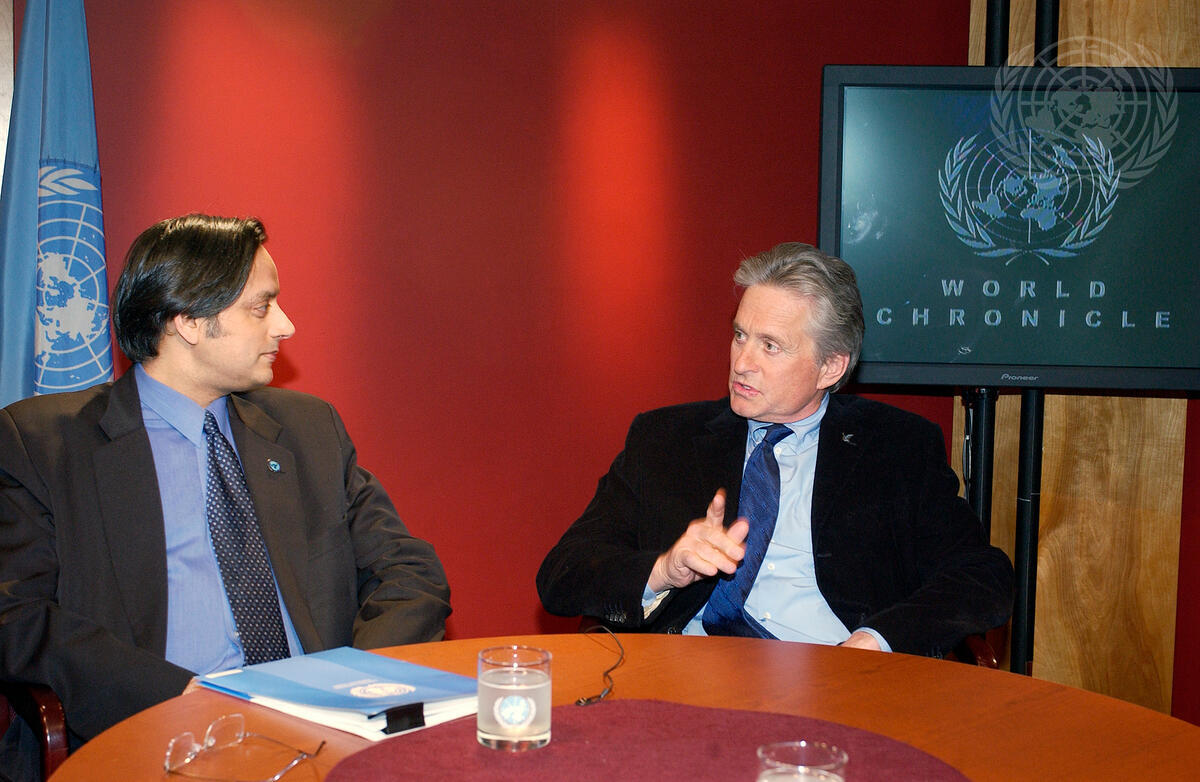 Michael Douglas (right), Actor and United Nations Messenger of Peace, is a guest on World Chronicle today. The programme is hosted by Shashi Tharoor (left), Under-Secretary-General for Communications and Public Information.