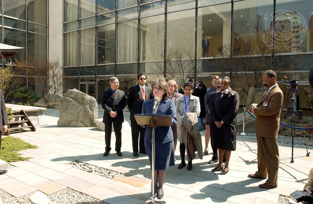 Catherine Bertini (centre), Under-Secretary-General for Management, speaking at today's ceremony.