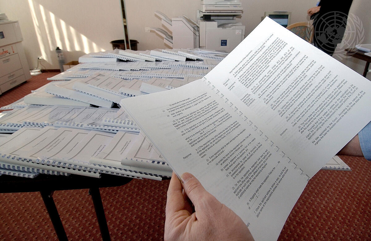 A shot of copies of the final version of the Secretary-General's plan for Cyprus.
