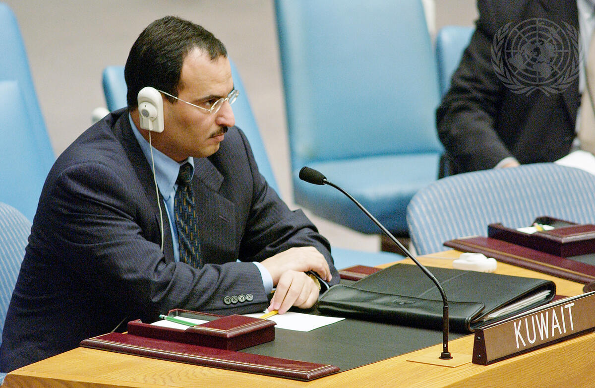 Mansour Ayyad Sh. A. Al-Otaibi, First Secretary of the Permanent Mission of the State of Kuwait to the United Nations, at today's Security Council meeting.