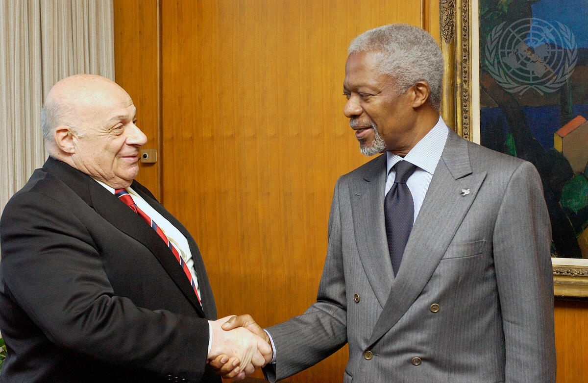 Secretary-General Kofi Annan (right) meets with Rauf Denktash, Turkish Cypriot Leader.
