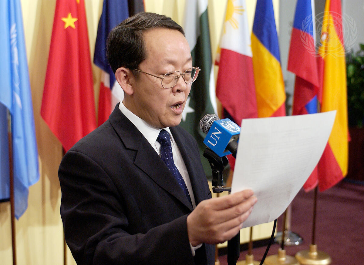 Wang Guangya, Permanent Representative of the People's Republic of China to the United Nations and President of the Security Council for the month of February, reads a press statement on Haiti.