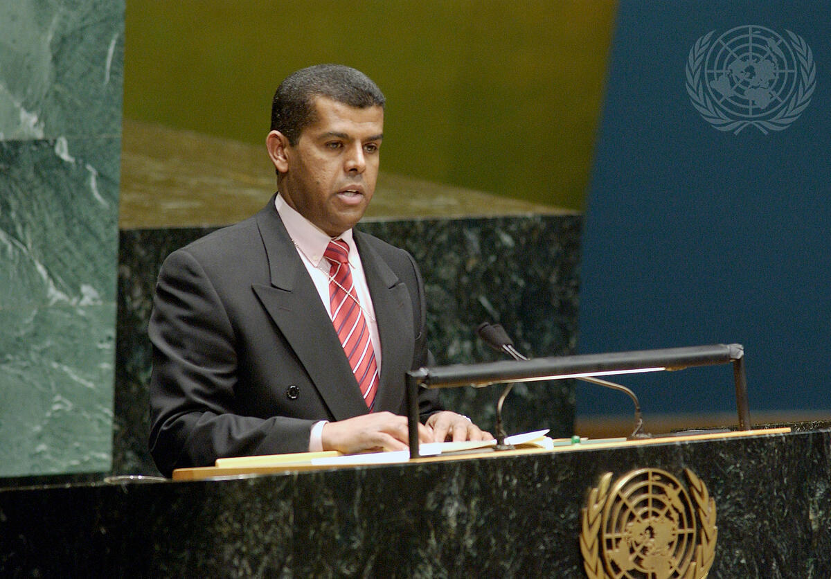 Jamal Nasser Al-Bader, Deputy Permanent Representative of the State of Qatar to the United Nations, addressing the General Assembly at today's meeting.