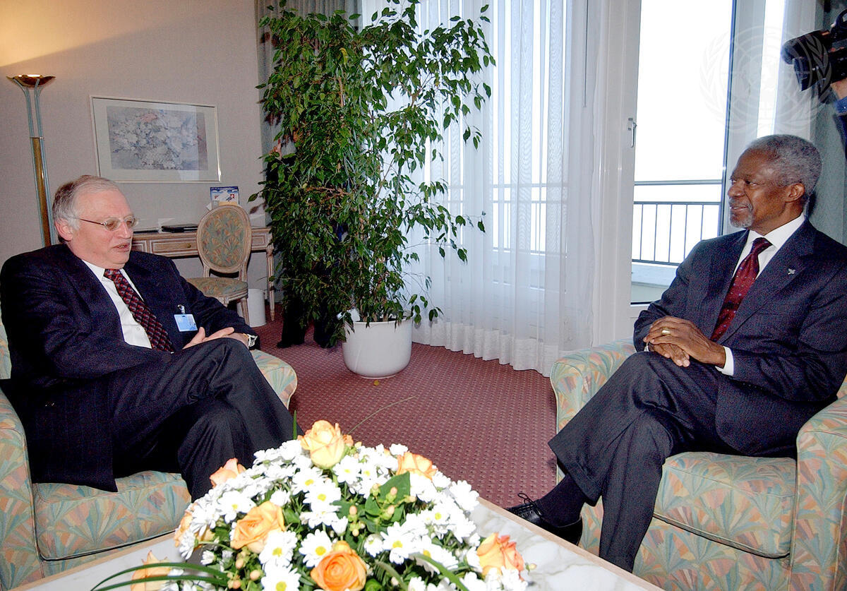 Secretary-General Kofi Annan (right) meeting with Gunter Verheugen of the European Commission.