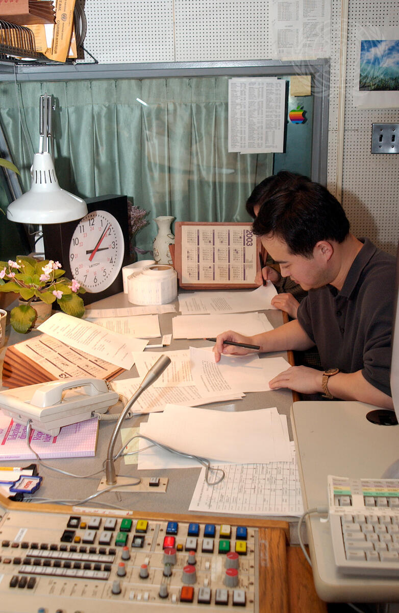 Xiyun Zhao, Production Assistant of UN Radio Chinese Unit, working at the UN Radio Studio.