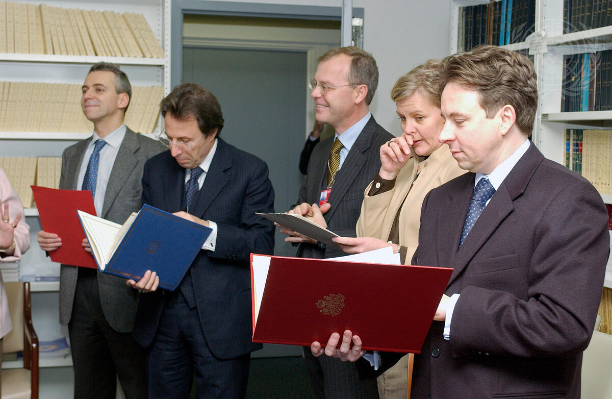 Joint deposit of the Instruments of Ratification of the ""Agreement for the Implementation of the Provisions of the United Nations Convention on the Law of the Sea of 10 December 1982 Relating to the Conservation and Management of Straddling Fish Stocks and Highly Migratory Fish Stocks, 4 August 1995"" by the European Community and its Member States. Delegations from Austria, Belgium, Denmark, Finland, France, Germany, Greece, Ireland, Italy, Luxembourg, Netherlands, Portugal, Spain, Sweden, United Kingdom and the Delegation of the European Community were present.
