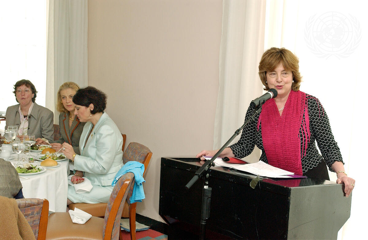 Sheryl J. Swed (far right), President of the US Committee for UNIFEM, speaks at the luncheon.