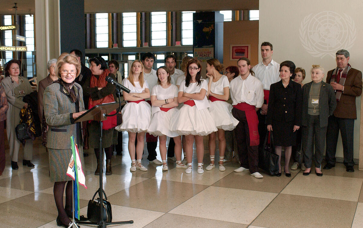 Thérèse Gastaut (left), Director of Strategic Communications Division of Department of Public Information, speaking at today's special event.