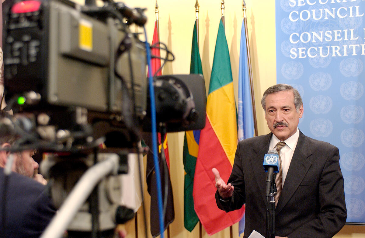 Heraldo Muñoz, Permanent Representative of Chile to the United Nations, and President of the Security Council for the month of January, briefing correspondents after today's Security Council meeting.