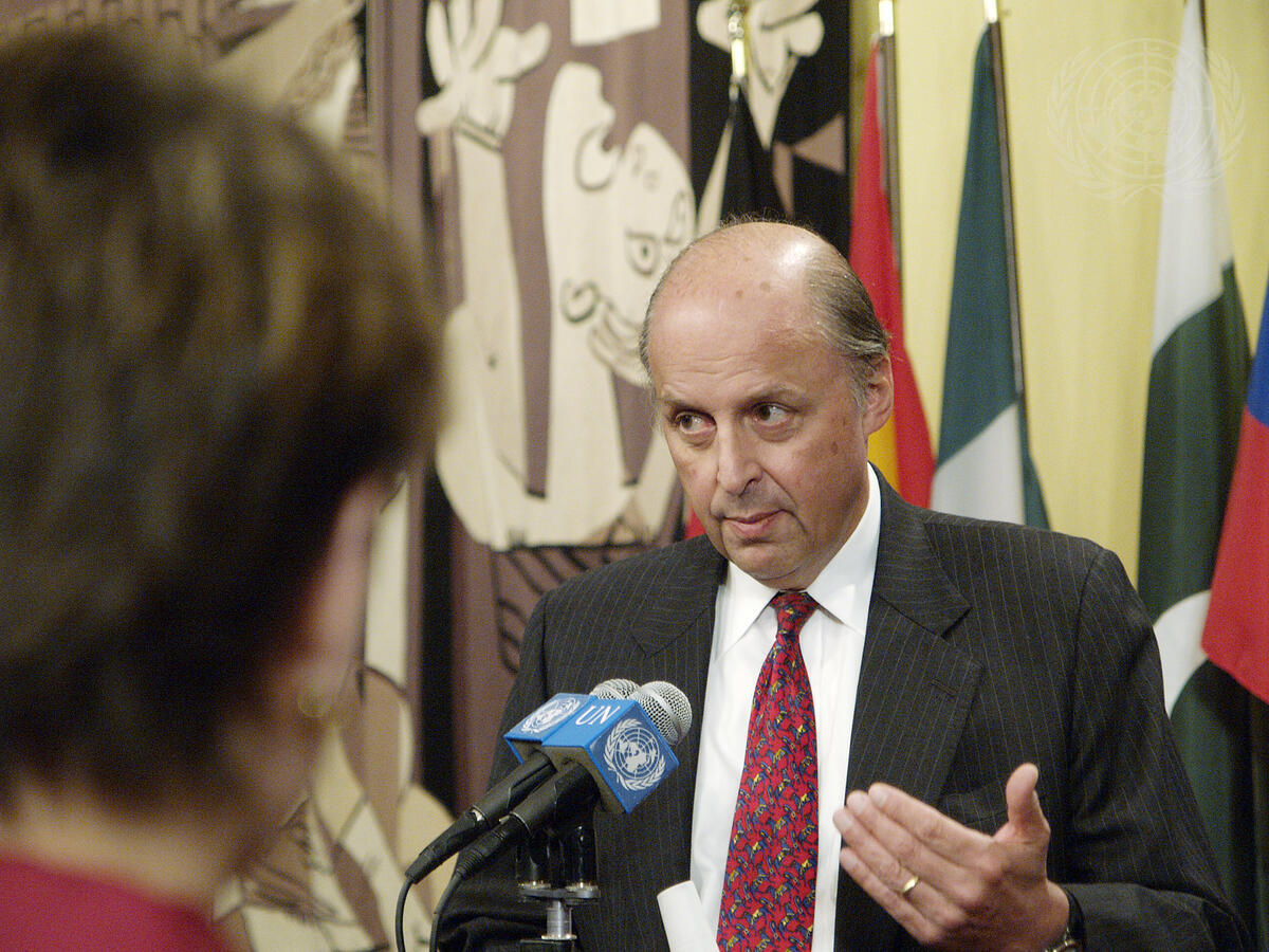 John D. Negroponte, Permanent Representative of the United States of America to the United Nations, speaking to correspondents at UN Headquarters after today's Security Council meeting. Members of the Security Council are continuing closed-door consultations on a resolution proposed by the United States of America on Iraq.